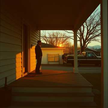Laid-back acoustic country song, gentle strumming guitar, upright bass, brushed drums, nostalgic lyrics about growing up on a front porch in a rural town, heartfelt male vocal, warm vintage Americana production