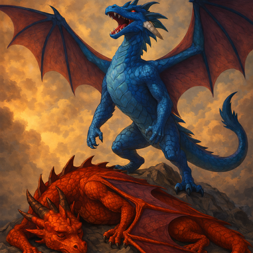 Voice: deep male, draconic tone, emotional control with bursts of power