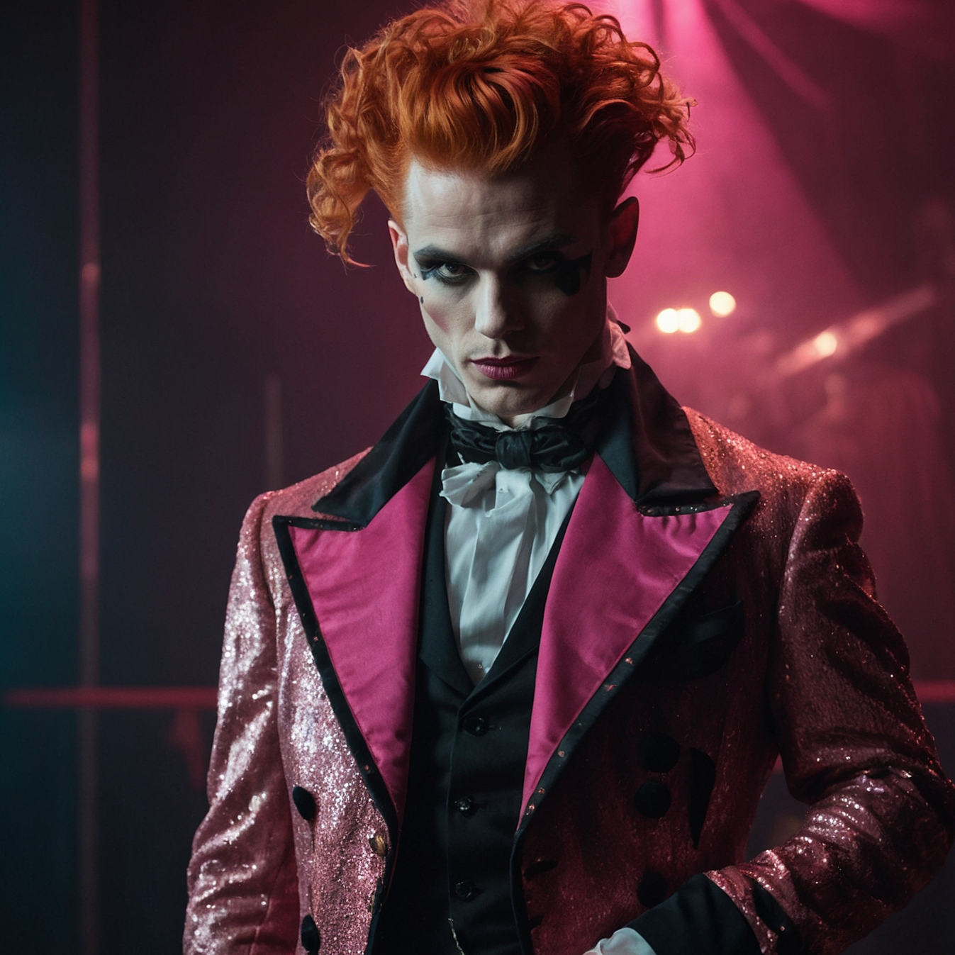 Energetic electro-pop with heavy distorted beats, dark synth textures, and rebellious female vocals, In the style of MĆ, Vocal is sharp, attitude-heavy, and edgy with a raw tone, Lyrics explore wild freedom, emotional chaos, and self-destructive love, Add a dominant surreal motive of a circus in the background ā distant, warped carousel sounds or faint echoes of a twisted 'Entry of the Gladiators' melody, A touch of irony and madness, like a clown laughing behind a mask, The song feels like a reckless night ride through a neon-lit dream ā thrilling, dangerous, and full of noise