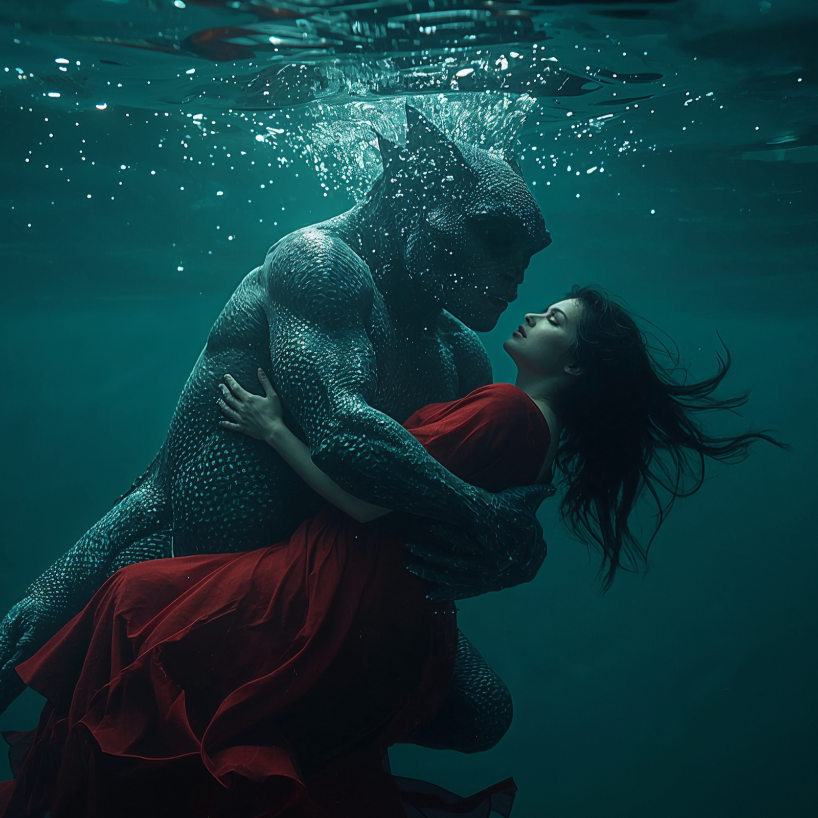 An ethereal bass music track from the 2010s, reminiscent of a mashup between Alexandre Desplat's "The Shape of Water, " Patrick Doyle's "Underwater Secrets, " and Future Garage, The mood is melancholic, dreamy, and floating, with a low to mid energy level, It features a mid-tempo, hypnotic groove with deep sub-bass pulses, set in a melancholic Dorian mode, The instrumentation combines a rumbling 808 bass, a glassy keyboard melody, sampled ocean sounds as percussion, floating synth pads, and a single, sad cello, Vocals are a heavily reverbed, ethereal, androgynous choir in the tenor range, The production should be spacious with a warm, present low-end, avoiding hard drums and obvious auto-tune