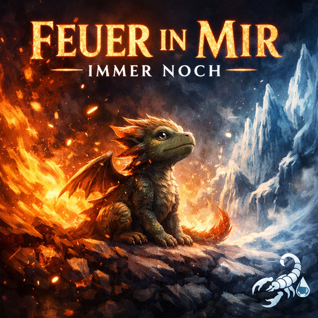 Emotional German male vocal track with modern melodic rap and a warm singing hook, Soft atmospheric pads, gentle piano, subtle trap drums, warm sub-bass, Vocals should feel heartfelt, melancholic, but strong, Hook is fully male singing, wide and emotional with reverb, Verses use introspective rap about fire vs, cold, inner child, struggle, and rising again, Overall mood: cinematic, nostalgic, uplifting, Light vocal doubling in final hook, soft whispers in outro, No female vocals