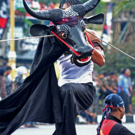 Instrumenten: gong, kenong, saron, kendang, bonang, gender, rebab (vioolachtig instrument), Gandrung of Seblang, Jaranan (of Kuda Lumping) is een trance-dans met paardenfiguren van bamboe, • Muziek: percussie-heavy gamelan (slaginstrumenten, gong, drum, angklung), • Wordt gebruikt om geesten op te roepen of dansers in trance te brengen, • Bij Reog Ponorogo, ook uit Oost-Java, is het doel vaak spirituele bescherming en magische kracht opwekken