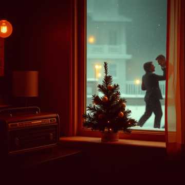 classy, old jazz-club tape feel, jazz, vintage christmas crooner jazz, warm smoky male baritone, piano, brushed drums, evolving, intimate, soft horns, slow-mid swing, warm, swing, upright bass, slow, soft, dance