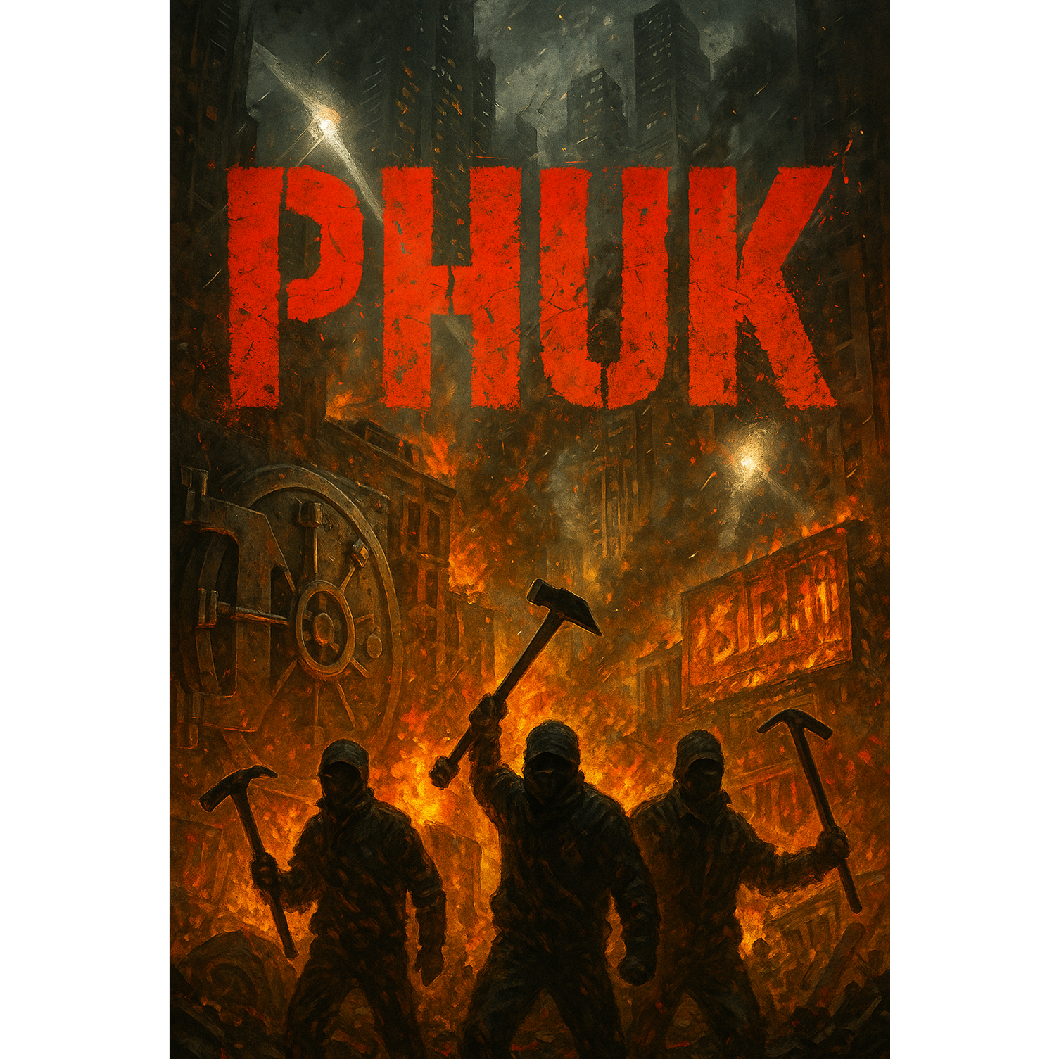 Verses delivered in aggressive spoken-shout cadence, clipped consonants, collective “we” voice, Choruses shouted in call-and-response gang vocals: first line spelled out “P, H, U, K, ” (sharp, staccato), second line yelled “PHUK!” with layered group shouts, Bridge = full instrumental rupture — guitars drop to half-time chug, drums heavier, vocals shouted with more distortion, Overall atmosphere: militant, violent, revolutionary; crowd-chant energy designed for live call-and-response