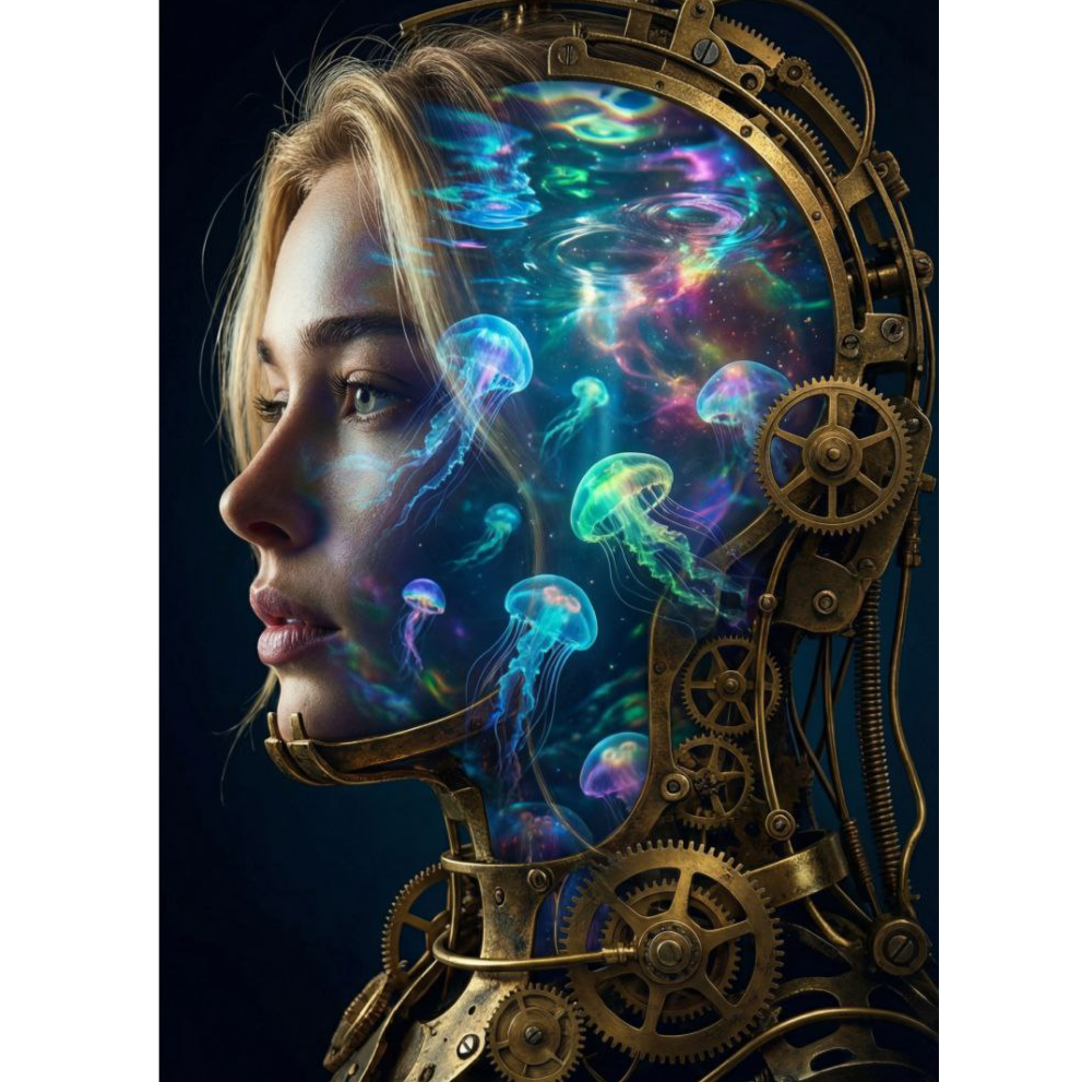 Dreamlike psychedelic neo-soul hip hop, 78โ80 BPM, deep fluid bassline moving slowly like ocean waves, minimal relaxed drums with soft kick and warm dry snare, loose human swing, warm Rhodes electric piano with slow chorus modulation, subtle reversed soul fragments drifting like underwater echoes, airy analog pads with slow filter movement, delicate guitar harmonics in wide stereo, subtle tape saturation and light vinyl crackle, gentle analog distortion on the Rhodes and bass for character, slight bit-crushed textures and soft overdrive on background elements, tape flutter and pitch wobble creating a drifting warped feel, spacious arrangement with lots of air and depth, calm reflective atmosphere, female vocal close-mic and intimate with breathy natural tone, verses delivered as mellow conversational rap in a relaxed pocket, chorus softly sung in smooth neo-soul style with gentle melodic phrasing and airy harmony layers, subtle choir textures behind the lead vocal, verses remain sparse