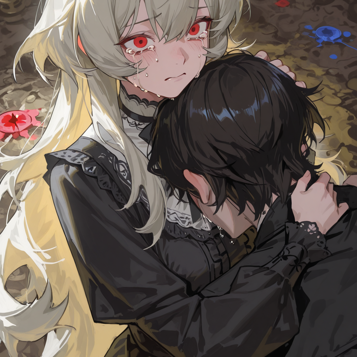 A childlike, insane, and emotional female vocal, Japanese style, sick core, a fairy tale dominated by love and madness, an intense, dark but loving lullaby, sad and broken electropop, an emotional and addictive melody, and a story sung by insane and sick control, A broken music box, a crazy synthesizer, and a celesta on the base play beautiful and insane tones, The tempo changes speed depending on the lyrics, and as a result of sick control, the story ends with a tragic ending, Love is at the center of the story as a deadly poisonous drug, False love, The heartfelt emotions sung as if in prayer, ‑Bright, ‑male vocals, ‑slow tempo