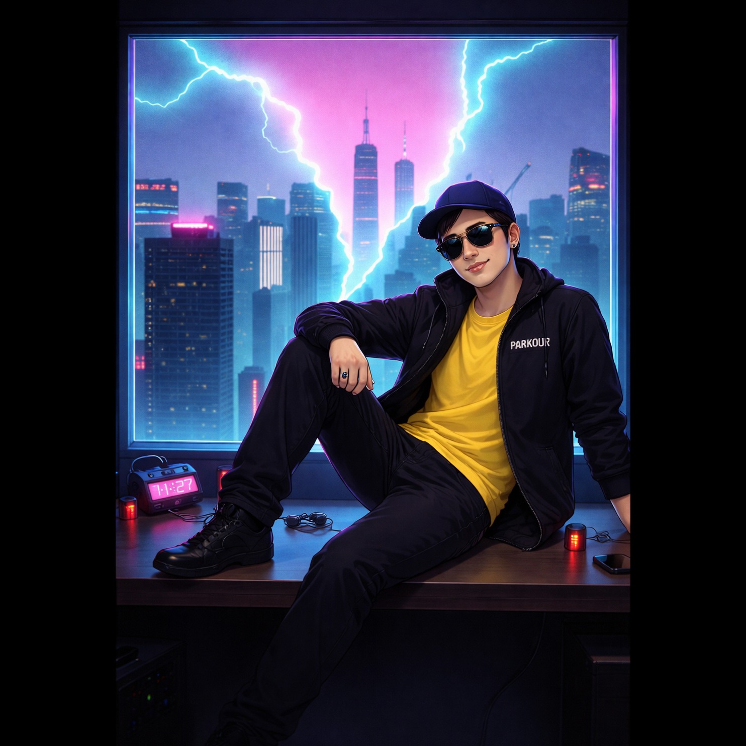 EDM, K-Pop, Funk, British accent, Catchy Male Voice, Tension Cinematic, electro synth