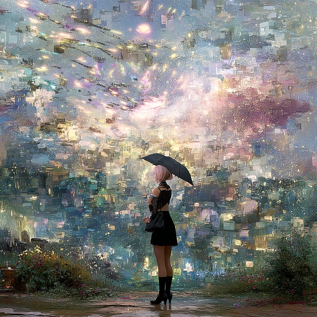 Glitches, noise, and breaks mix together in multiple layers, and then a passionate piano solo cuts through the chaos, Glitches, noise, and breaks mix together again in multiple layers, and then a passionate violin solo cuts through, After that, glitches, noise, and breaks mix together again in multiple layers, and finally the piano and violin clash in an intense session, and it all ends in a dramatic break, emo, electronic, deep, edm, synth, guitar