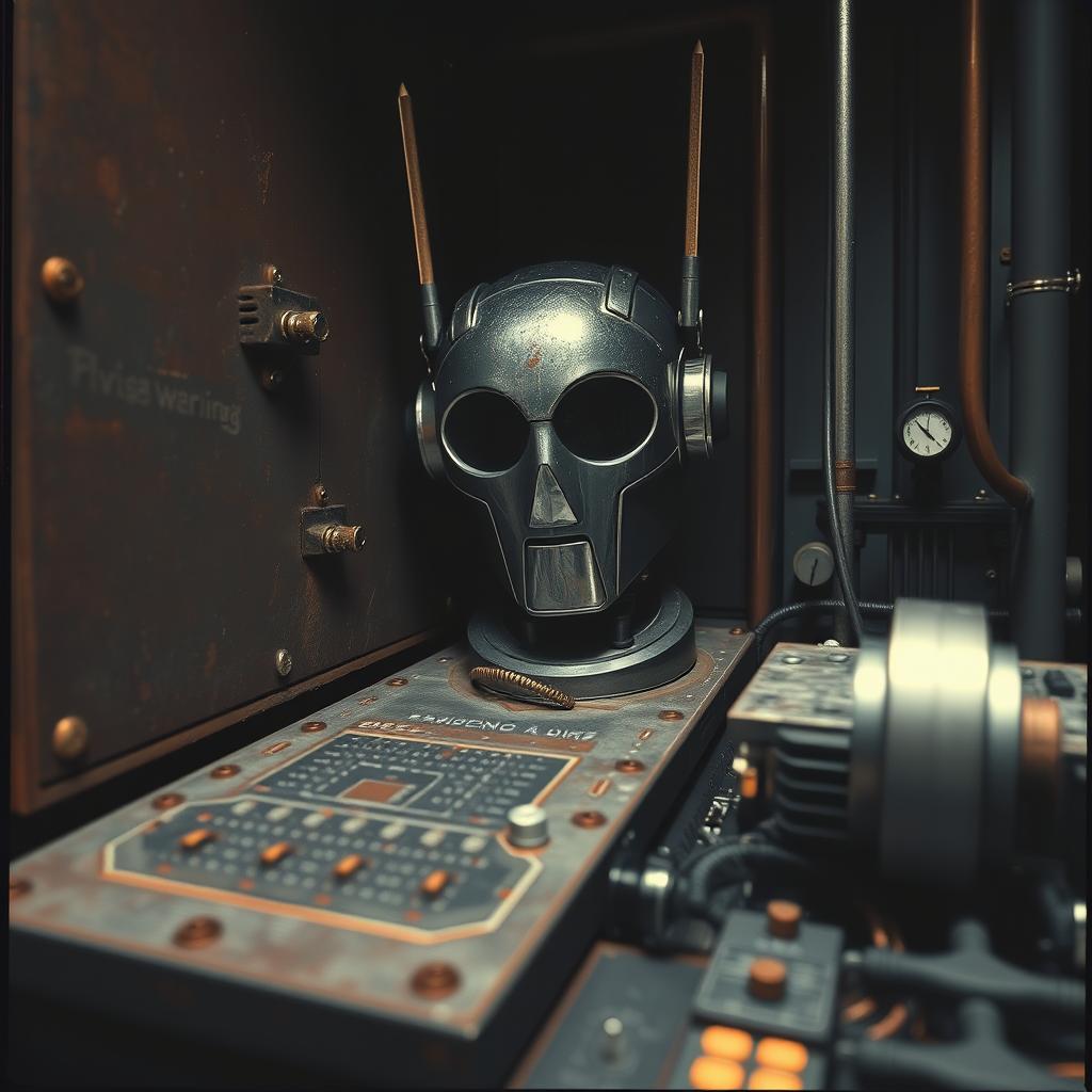 evil, dark, twisted, grime, midtempo bass meets cyberpunk bass at 100 BPM with cut time 50 bpm drops, Rusted metal percussion and detuned synth pulses, Distorted 808s and earth-shaking sub frequencies dominate, Glitch stutter drums and syncopated trap hats create rhythmic chaos, Grimey sub grooves provide visceral weight, punctuated by metallic, machinery-like synth stabs, Parallel compression ensures aggressive cohesion; tape saturation adds analog warmth to digital brutality, Granular reverb creates haunting decay, while stereo delays provide disorienting precision, Structure: Sparse, tension-filled intro builds into a dense, bass-obliterating drop, Strategic breakdowns reload energy with halftime switchups for crushing tempo shifts, Aesthetic: Bleak, melancholic, and tragic, High-velocity industrial aggression with deep, atmospheric weight, Hits like a freight train, No fluff, pure digital brutality