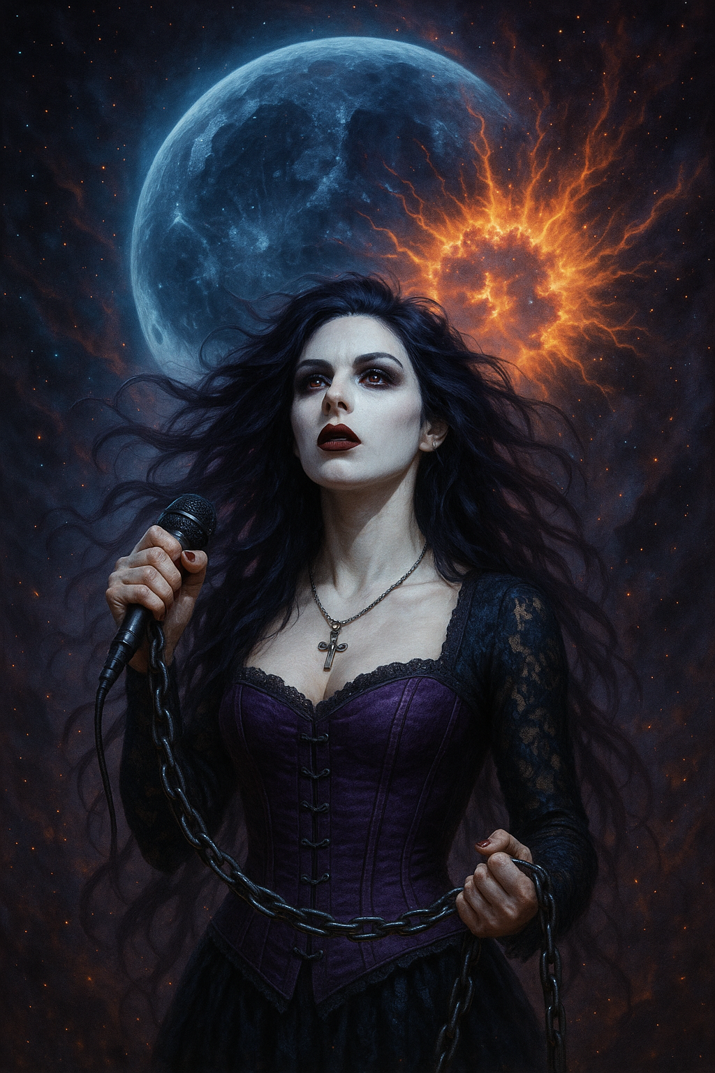 Dark Gothic Metal • Symphonic Metal • Cosmic Metal • Atmospheric Metal • Female Lead Vocal • Dramatic Choirs • Deep Bass • Orchestral Strings • Slow-Building Intensity • Celestial Reverb • Drop A# Tuning • 118–132 BPM (slow burn to heavy rise)