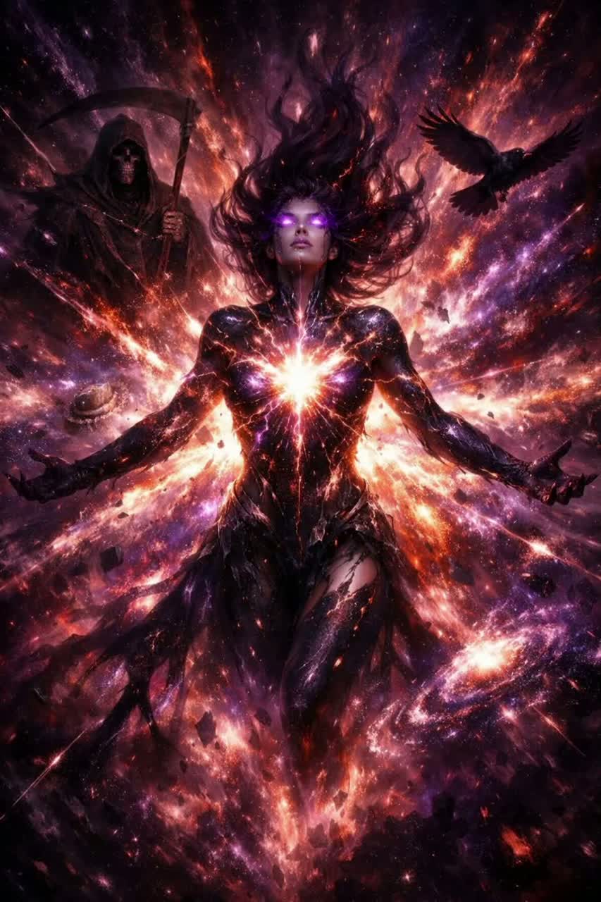 Violent ignition • Cosmic collapse • Elemental detonation • Birth through destruction • Chaotic transcendence