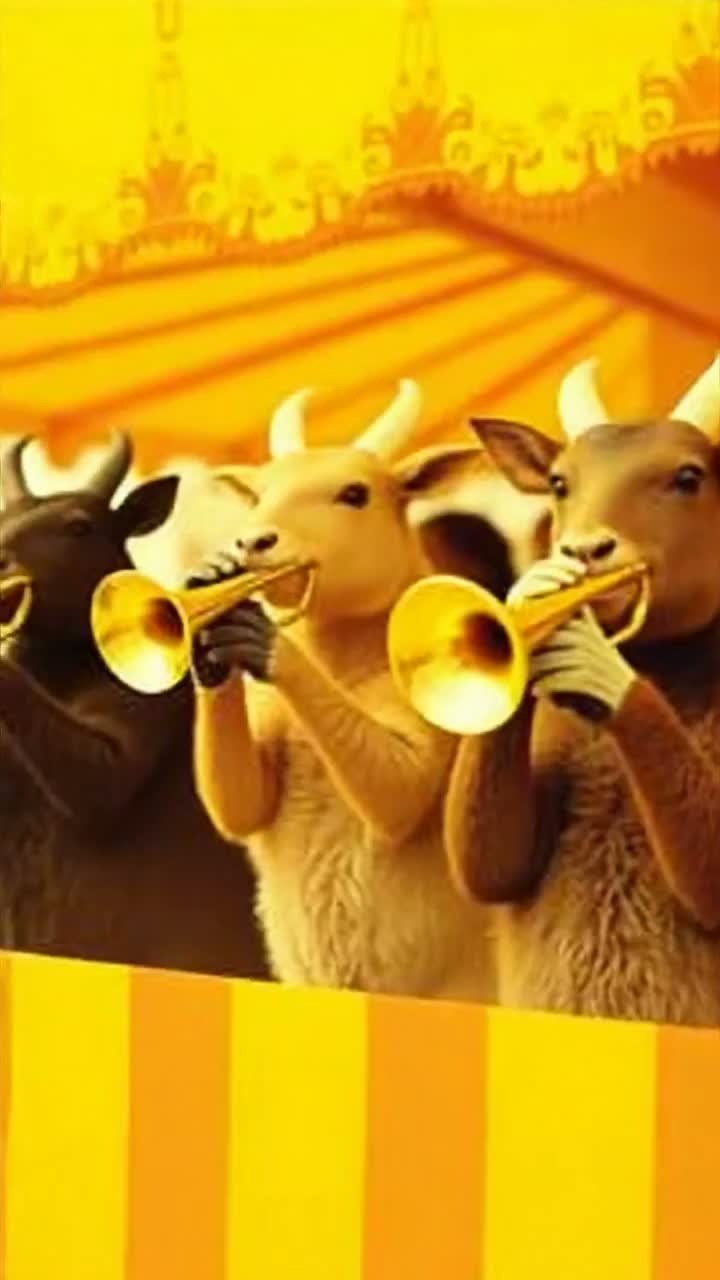 “Brass-driven math-punk, bright trumpets & alto sax leading syncopated melodies, dual-guitar counterpoint, polyrhythms alternating 3-3-2 and 4-4-4-4, breakneck 190 BPM, live room ambience, ecstatic summer parade mood, ”