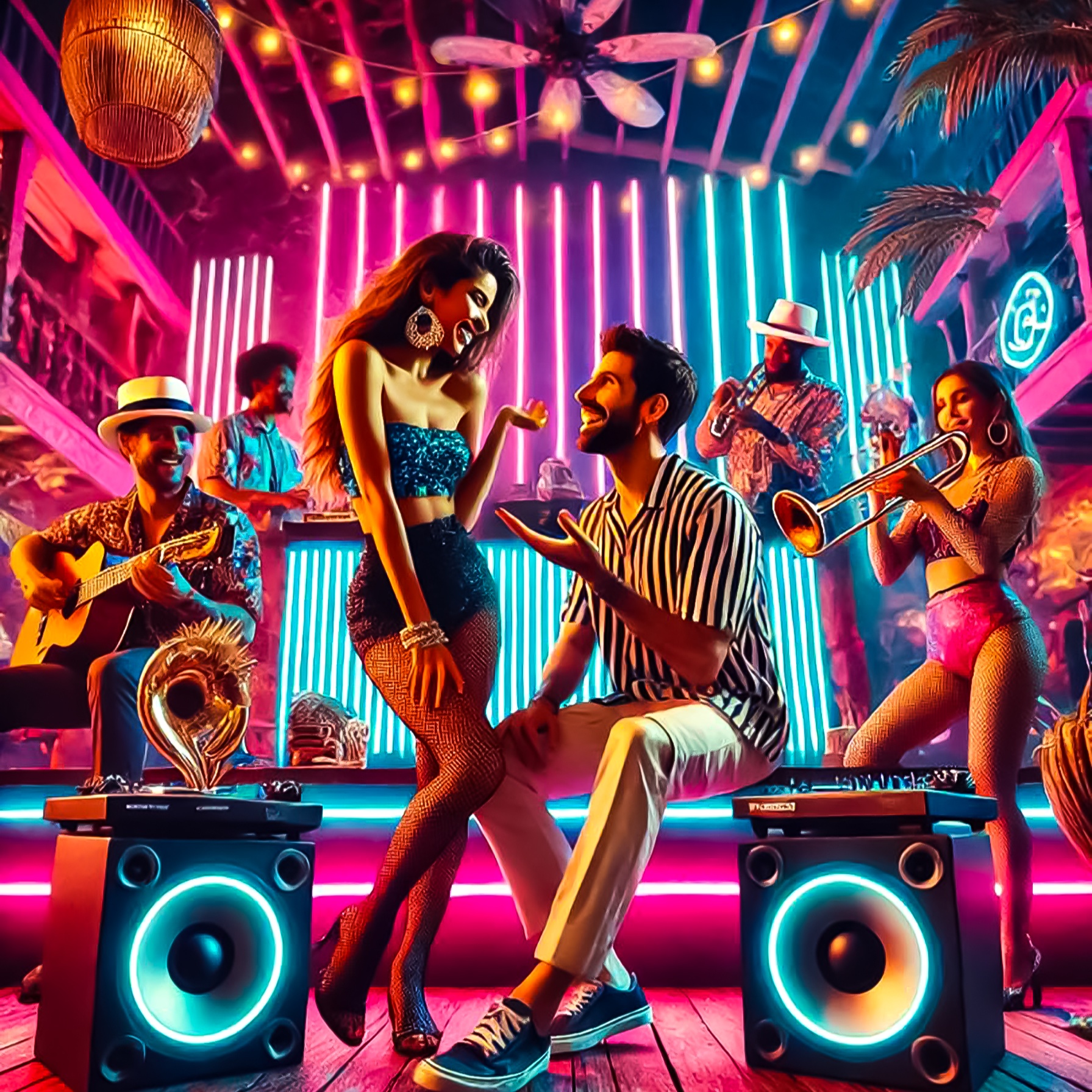 trap, japanese trap, guaracha, dembow, guiro, miami bass, trap, glitch, dirty south, chopped, afrobeat rhythms, reggaeton percussions, hyperpop synths, baile funk basslines, dancehall grooves