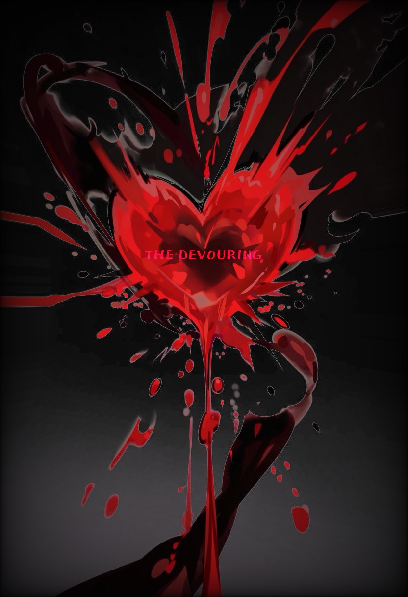 Dark Heavy Rock × Industrial Metal × Beast-Voice Vocal, Low growl whisper → deep roaring screams, Voice sounds non-human, animalistic, breathy, gritty, distorted, Aggressive rhythm, pounding drums, metallic bass, grinding riffs, Vocal pacing: slow whisper in verse, explosive roars in chorus, Lyrics mostly English with a few Japanese words in chorus (“喰らい尽くす”, “堕ちろ”), Atmosphere: feral, haunting, predatory, desperate hunger, No melody sweetness, Raw, primal, violent tone, Let the vocal feel like a creature crawling, snarling, and attacking, Add subtle reverb, dark ambience, and breathing noises between lines, BPM around 128–135, Make the chorus huge, destructive, like a monster breaking free, Overall mood: THE DEVOURING — a creature consuming the world