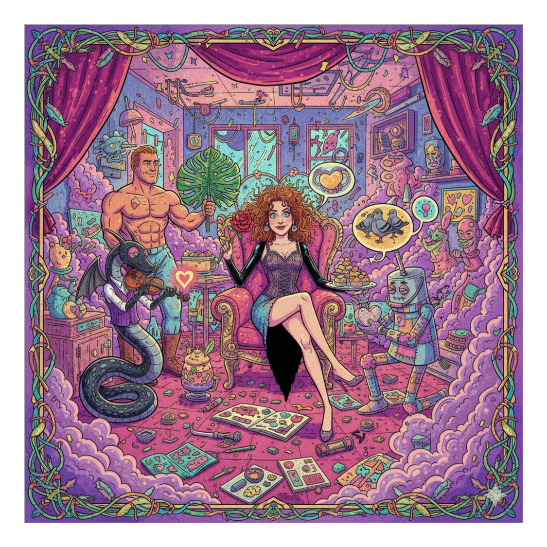 The track opens with a whimsical orchestral burst — banjos, tubas, and honky-tonk piano colliding like a cartoon parade, Maria’s voice enters with a sweet, airy tone, then flips into wild character impressions mid-line, giggling through absurd lyrics, Background vocals echo like a Greek chorus of confused neighbors, Slide whistles punctuate punchlines, and sudden tempo shifts mimic emotional spirals, A kazoo solo interrupts a heartfelt verse, followed by a gospel-style breakdown about a squirrel in a laundromat, The bridge features Maria whispering dramatic confessions over a disco beat, then exploding into a polka finale, It’s theatrical, unpredictable, and joyfully unhinged — a sonic rollercoaster where sincerity and silliness dance arm-in-arm through a musical madhouse