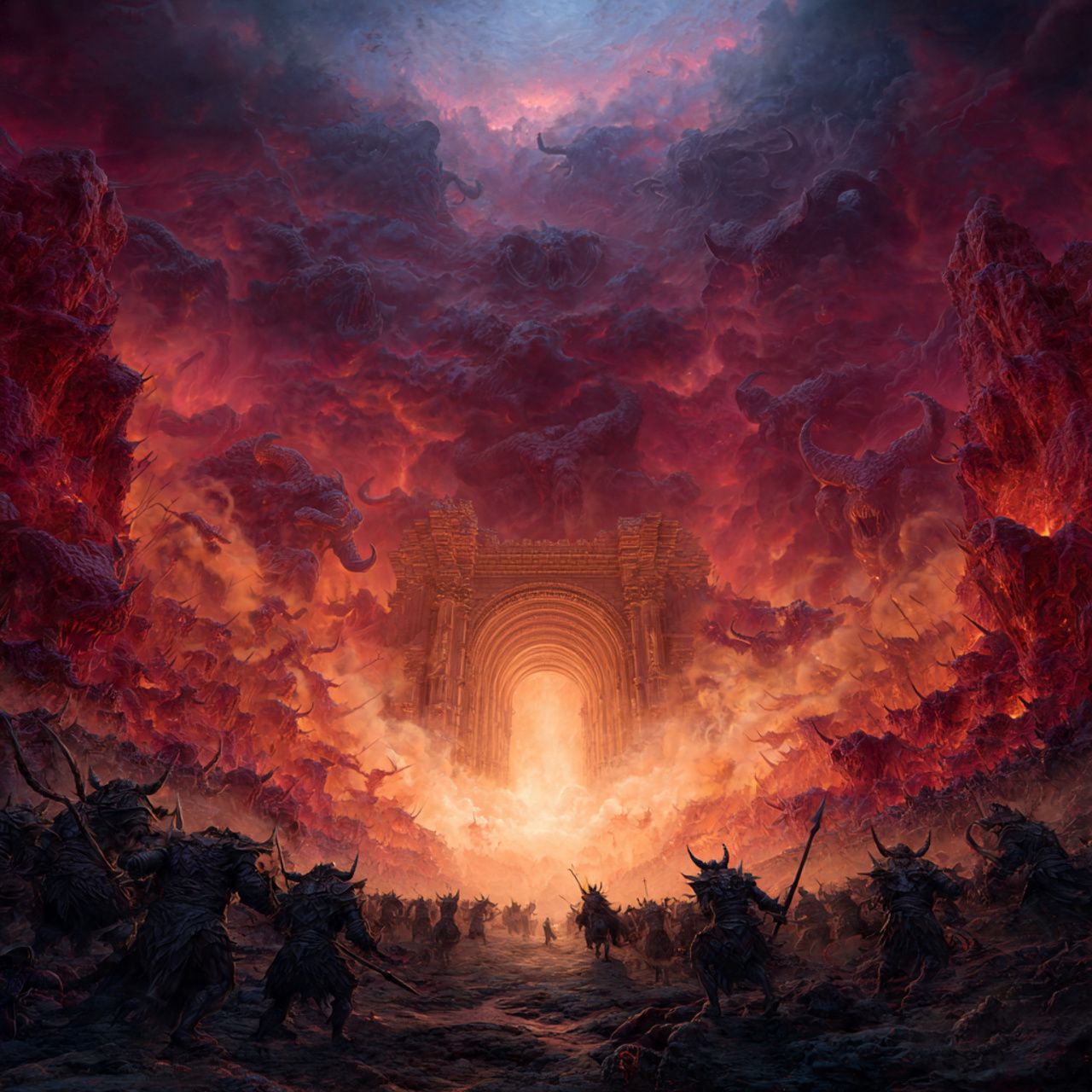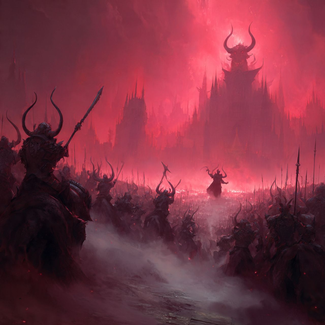 90's Death Metal, Symphonic Death Metal, Deep Growling Death Vocals, Lead and Rythym Guitars, tuned to the key of D standard (D-A-D-G-B-E), set 11/8 time signature, Slow Tempo, Bass follows Guitars Closely, Thunderous Double Bass drumming, Keyboards, Synths, Organ, Violin, Cello, Trumpets, Haunting Ambiance, Evil Ambiance, Gothic Ambiance, Dark, Malevolent, synth