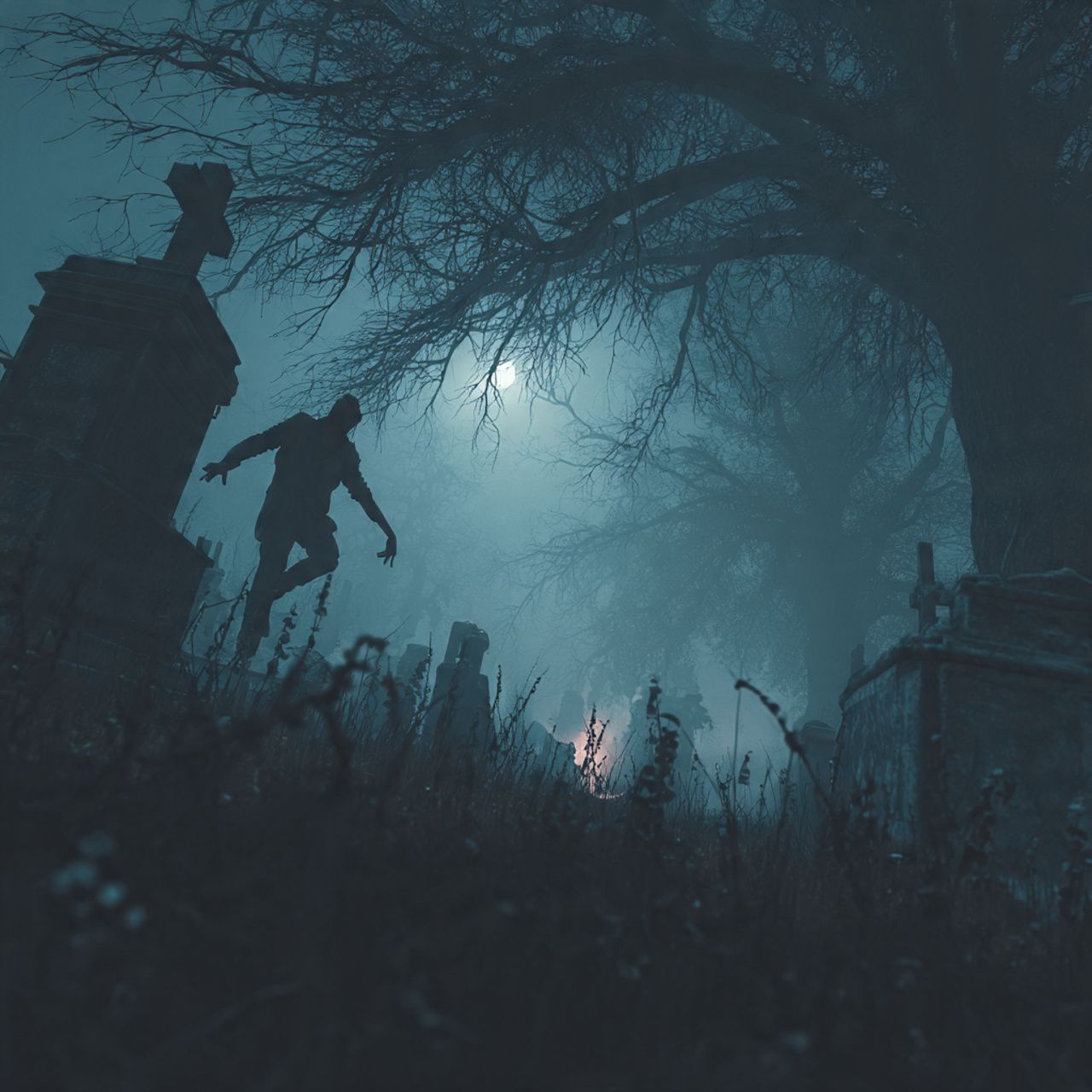 Haunting gothic post-punk dirge with deep echo vocals, whispered layers, horror movie synths, slow build into shrieking climax, distorted guitars, funeral atmosphere, and terrifying ambiance
