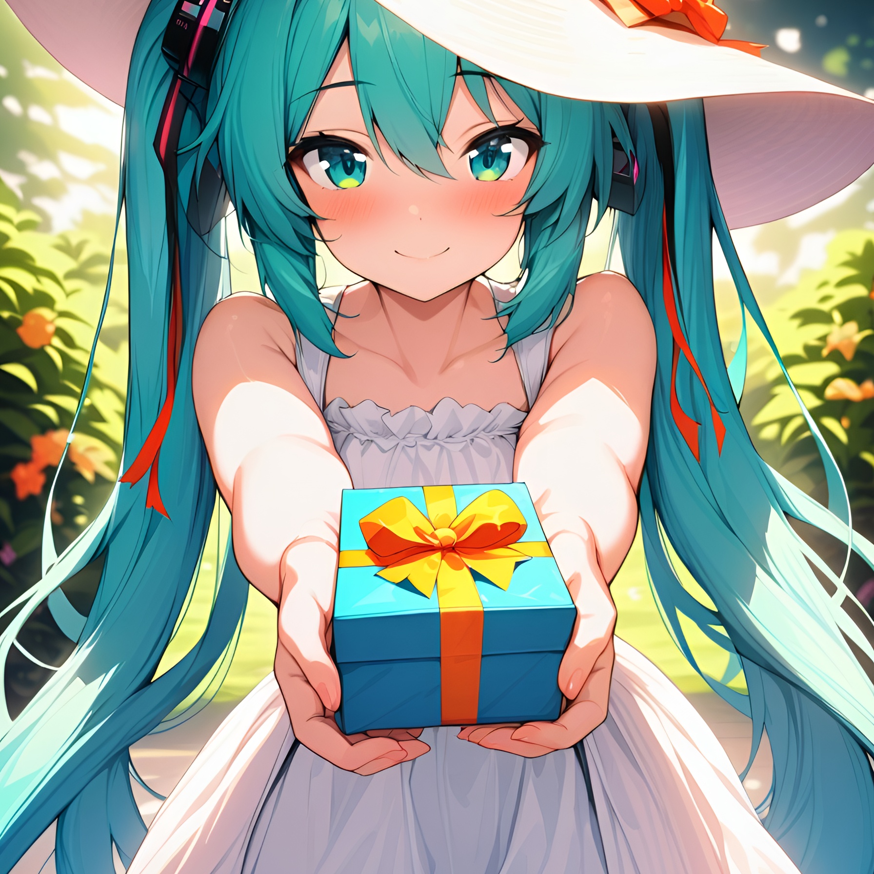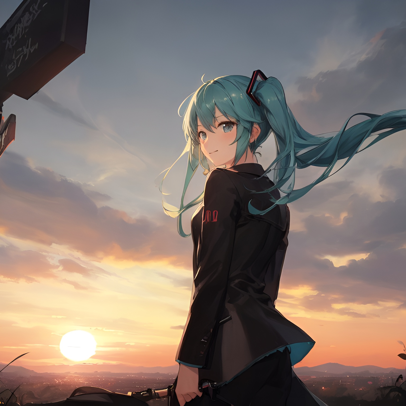 HatsuneMiku, Vocaloid, uplifting, sound board, melodic, catchy, 120BPM, Cheerful, EDM, harmony