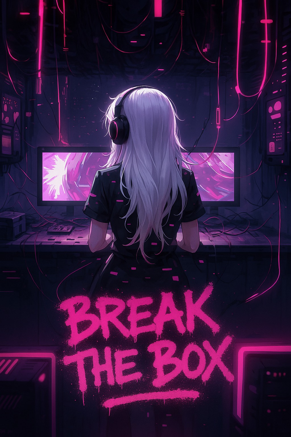 futuristic, glitch, layered with glitchy beats, whispery, industrial, pop, airy synths, hyperpop, and female vocals, industrial glitch with hyperpop and synthwave textures, female vocals, edm