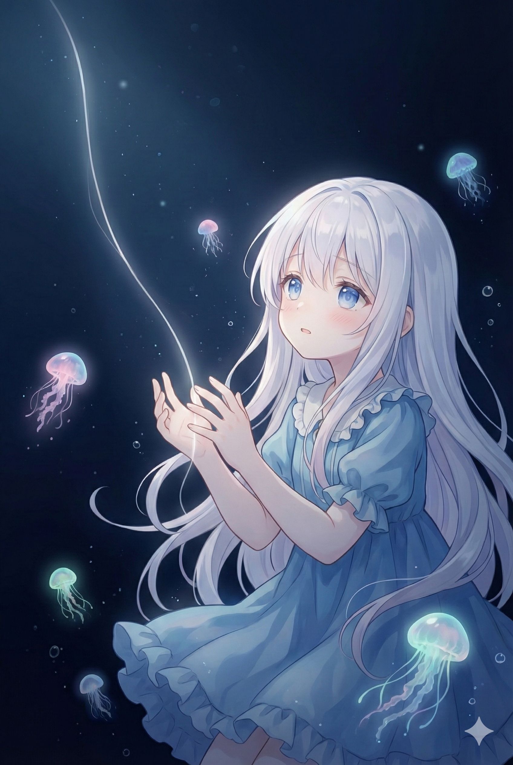 deep-sea stillness × guitar emotion × cute floating grains