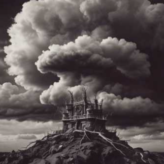 dark, and gritty male vocals, eerie synth pads, heavy trap beat with distorted 808s, rap
