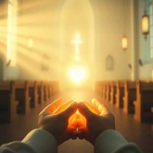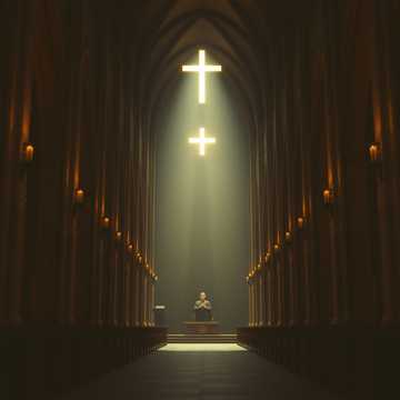 Deep cathedral ambience, very subtle echo, Single male reader voice begins calmly, solemn and reverent, [Prayer – solo reader]