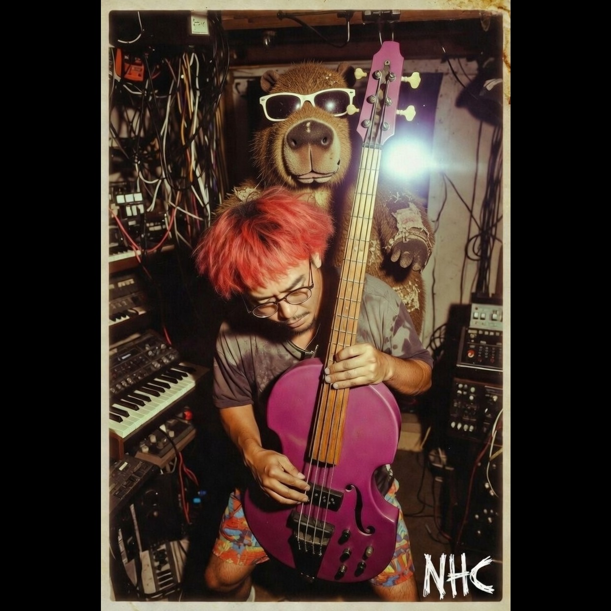 [Instruments: NHC's Virtuoso Slap Double Bass (Lead Instrument), Candombe Drums (Madera y Lonja), Accordion (Musette style with distortion), Analog Synths, Glass Percussion]