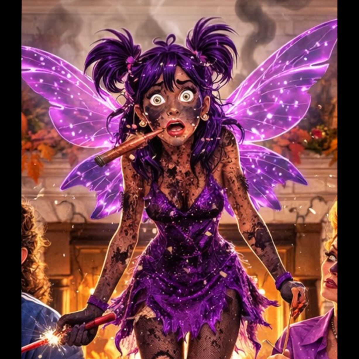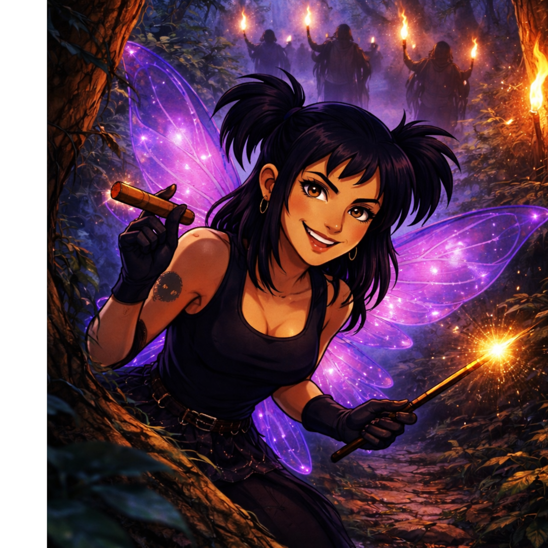 Samba électro à 110 BPM : intro batucada (cuica, surdo, tamborim, agogô) croise un kick électro pop, basse bondissante et guitare funk tranchante, Cuivres rayonnants fusionnent avec synthés brillants, Verses rap-chantés féminins piquants, refrains explosifs chœurs mixtes, FX cartoon et interjections burlesques, Final : carnaval total, tutti euphorique et clash polyphonique, la cuica bouillonnant en filigrane