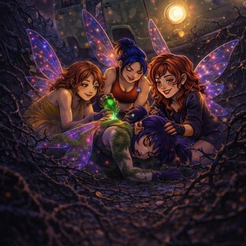 A cinematic, satirical track opens with city ambience, analog pads, and glitch textures, Retro arps and warm synth bass drive bright TR-707/808 drums at 104 BPM, Ethereal female vocals blend vocoder and glitch, while dynamic synths build in verses, Choruses burst with pulsing brightness, The bridge spotlights robotic spoken word over swelling pads, and the outro weaves electric surges, fading synths, and street noise for an inventive close