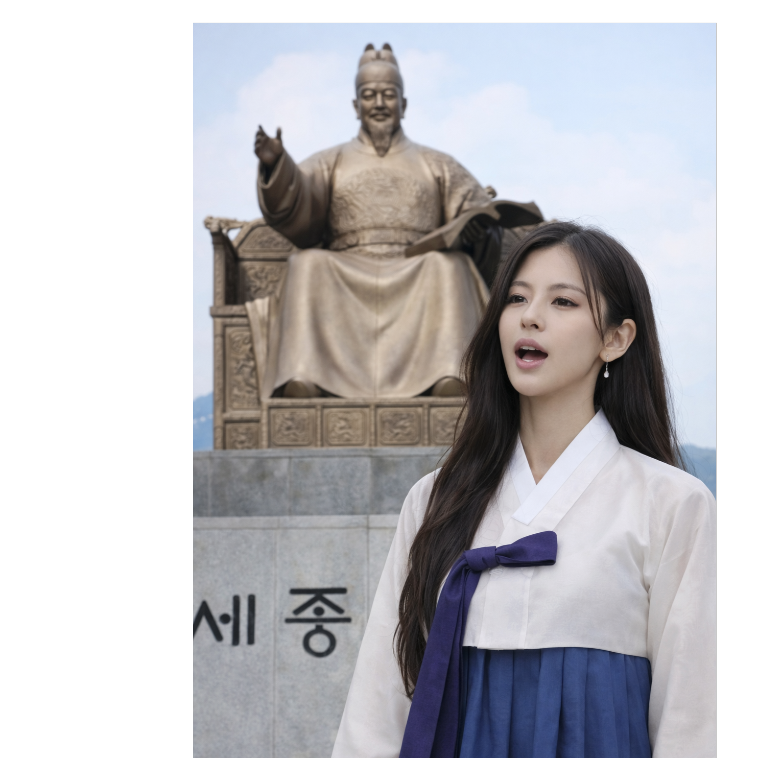 modern orchestral metal, restrained and non-heroic, Tempo: 100BPM, steady and heavy, Mood: cold authority, controlled clarity, quiet conviction, Theme: system over hero, design over praise, language as infrastructure, โํ๋ฏผ์ ์โ as necessity, not sentiment, Vocal: female Korean vocal(Yeoni), Vocal must be very front and clear, No muffled tone, no washed-out reverb, Controlled grit in upper register, High notes must pierce through distorted guitars and orchestra without shouting, Do not explode emotionally, Enduring high notes, slightly delayed bends, open endings without closing the last note tightly, Traditional Korean vocal attitude, modernized and restrained, Instrumentation: low orchestral strings repeating structural motifs, slow and heavy metal drums, palm-muted distorted guitars as rhythmic foundation (not lead), metallic percussion like clockwork or machinery, No epic choir, no cinematic swell, Ending: unresolved and calm, feels like the system continues after the voice stops
