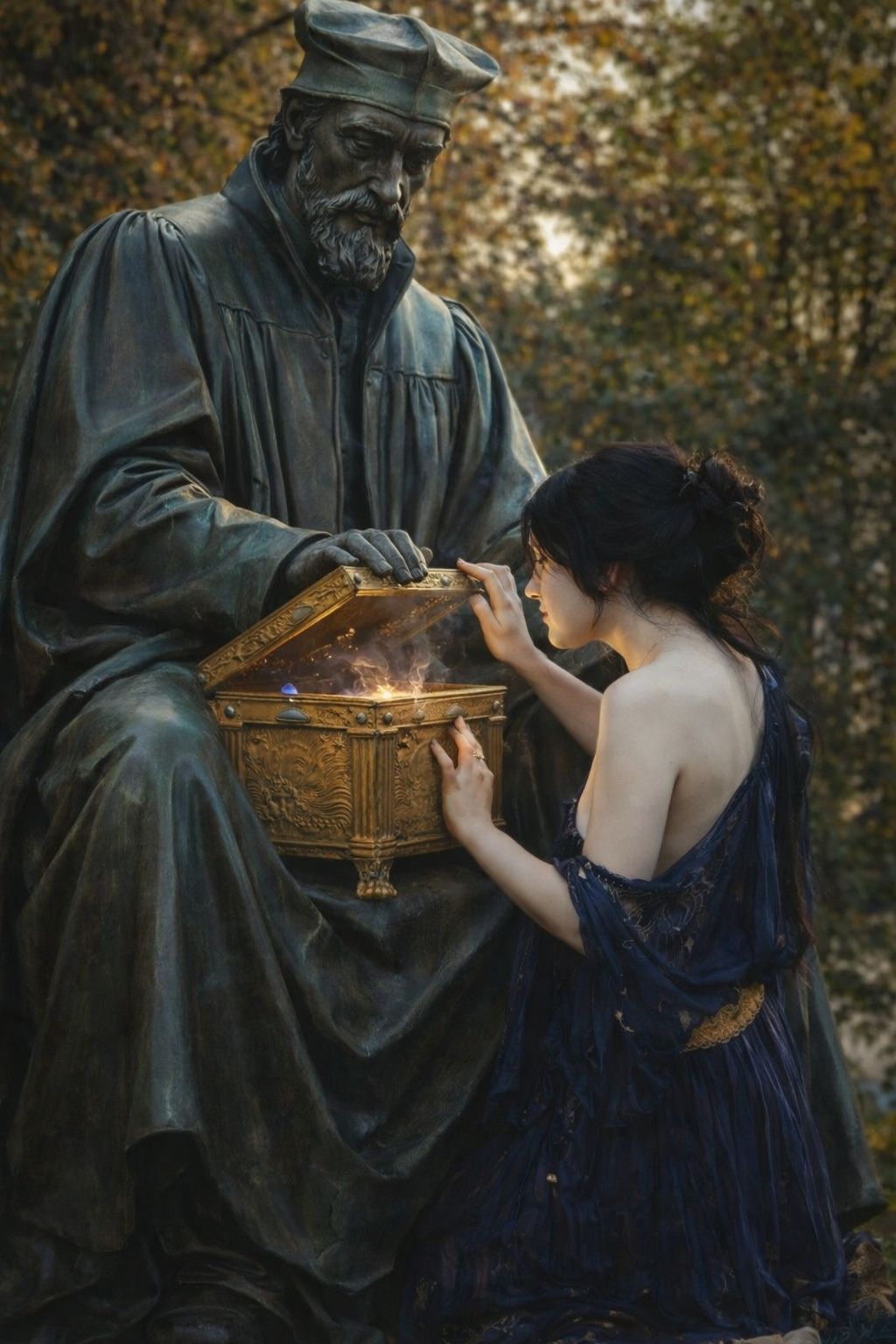 Modern protest rock ballad, 4/4, 110โ114 BPM, Female lead vocal (Yeoni), front-placed and dry, minimal reverb, vocal always clearly above instruments, High notes must cut through distorted guitars and bass without shouting, No muffled or washed-out tone, Controlled grit on peaks, restrained power, not emotional explosion, Traditional Korean vocal attitude modernized: enduring high notes, slightly delayed bends, phrases released openly, no closed endings, Emotion is contained conviction and clarity, Arrangement starts sparse with clean electric guitar arpeggio, bass enters early, tight restrained drums, Chorus lifts by tension and vocal presence, not loudness, Short pull-back bridge, then final chorus returns with weight and resolution, Narrative parallels Martin Lutherโs Reformation and a modern individual, Explicit reference to Pandoraโs box, Theme is structural collapse, survival, and becoming representative by remaining after the opening, Tone is sober, declarative, unwavering