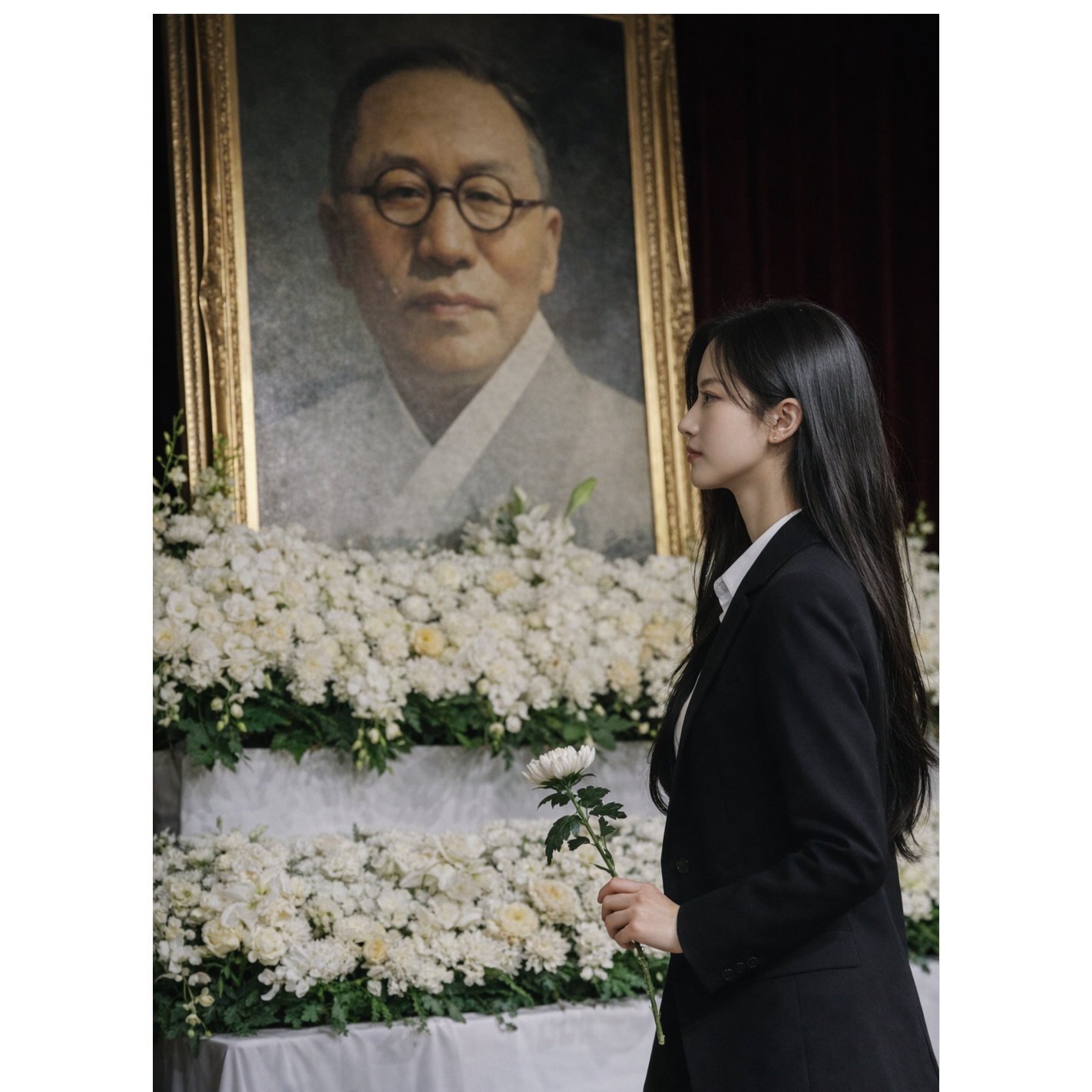 Korean memorial protest song, mass choir centered, Slow to mid tempo 4/4 around 88โ92 BPM, key D minor, Lead female vocal, thick chest-driven tone, powerful and grounded, no sweetness, no breathy softness, Strong mid-low register, controlled grit in high notes, straight emotional delivery, clear diction, Vocal mix is very forward, dry, intimate, no muffled sound, minimal reverb, Atmosphere is solemn, resolute, and collective, Mourning that turns into shared will and remembrance, Arrangement begins restrained: