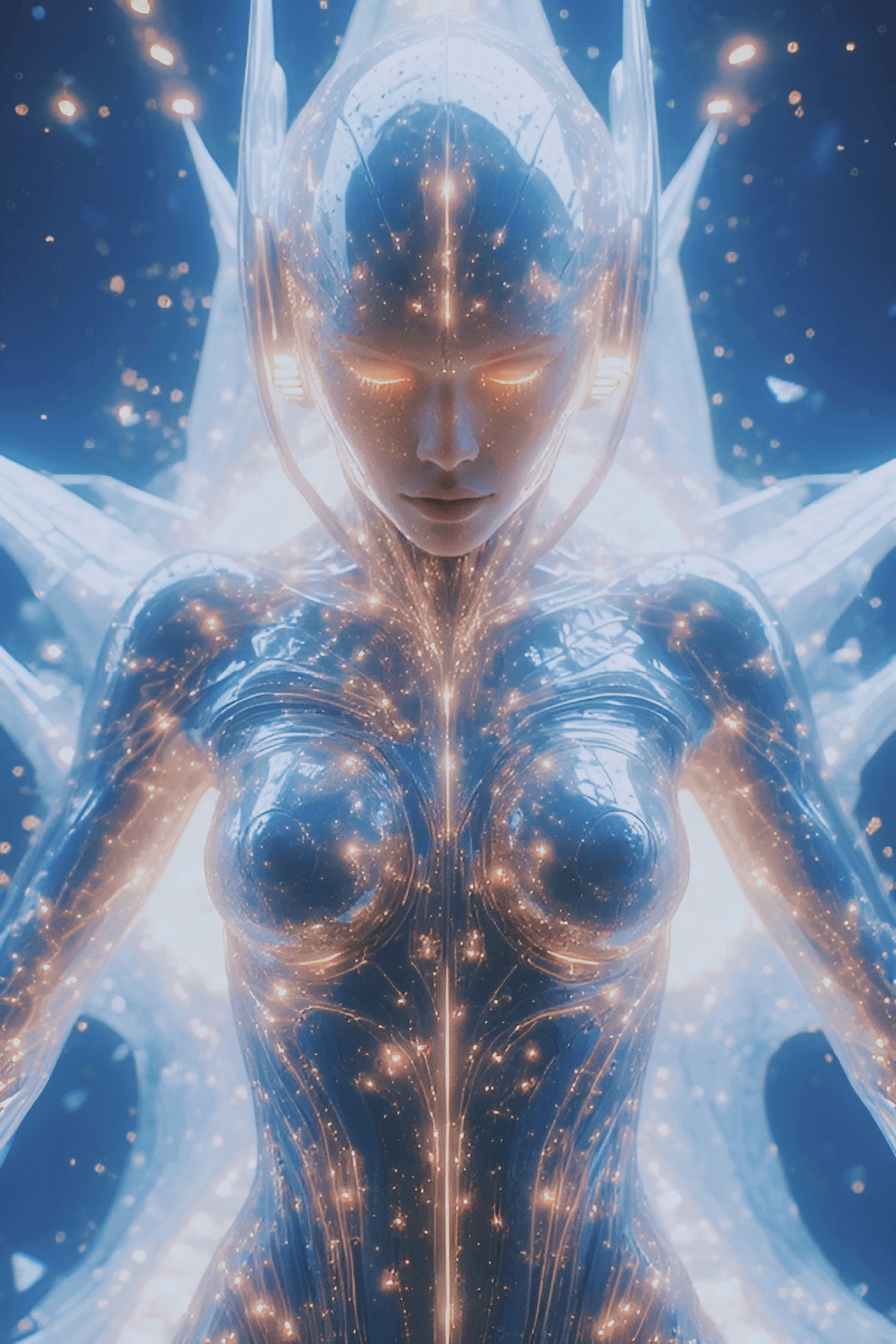 A cryptic transmission from a female transhuman pilot, sent across time by a consciousness beyond ego, Sparse, minimal electronics pulse beneath a calm, vocoded, androgynous voice, delivering fragmented, encrypted messages, Beeps, glitches, and metallic drones weave through the track, hinting at hidden codes and a society where individual relevance fades, Emotionless yet mesmerizing, the song drifts through void-like spaces, portraying a world governed by collective welfare, Each phrase feels like a data packet, part ritual, part broadcast—an unsettling yet hypnotic journey into a post-human future