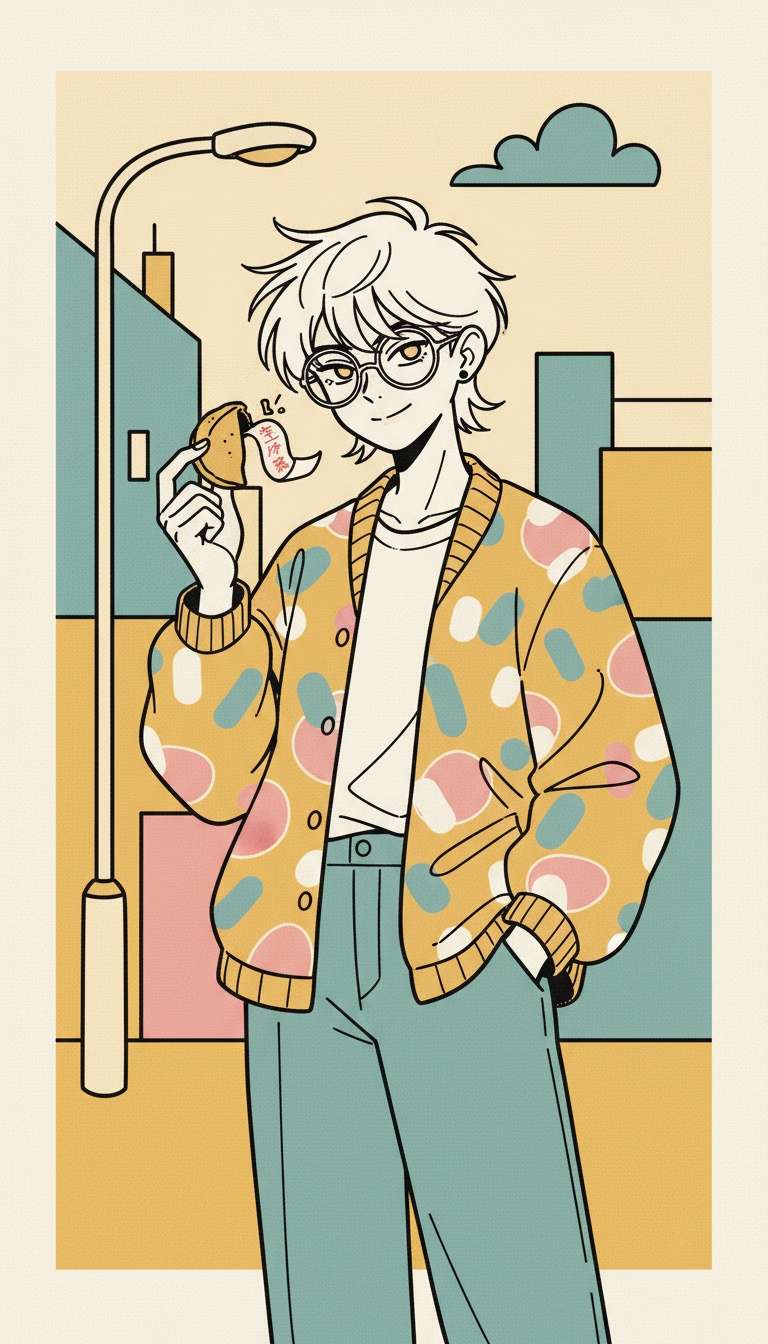 Modern lo-fi alt-hip-hop / indie-pop In English, Japanese and Chinese with understated production, Mid-tempo groove around 88–96 BPM with relaxed but precise timing, Sparse, modern hip-hop beat using soft punchy kicks, crisp rim/snare, and micro-swing rather than lo-fi haze, Clean sub-bass or muted electric bass anchors the groove with controlled low-end instead of warmth-heavy saturation, Minimalist electric guitar, Rhodes-like keys, or plucked synths provide harmonic motion with lots of negative space, Melodic layers are restrained and intentional, using short motifs, filtered pads, and subtle ambient tails, Vocals feel intimate, close-mic’d, and modern, alternating between half-sung and conversational delivery, Production favors clarity, restraint, and micro-details over lo-fi noise, Playful pauses, drop-outs, and timing quirks reinforce the self-aware humor, Overall mood is wry, observant, lightly ironic