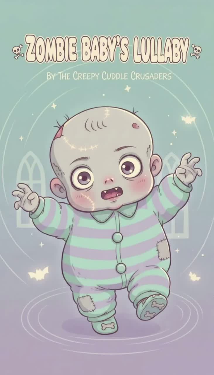 Electro-cartoon children’s song with playful spooky march rhythm, bouncy synth bass and toy percussion, whimsical Halloween energy without fear, minor-key hints balanced with warm major resolutions, cartoonish arpeggiators, music-box and celesta accents, gentle swing and nursery rhyme repetition, call-and-response structure inspired by classic children’s monster chants, humorous contrast between spooky monster imagery and baby behavior, cute, silly, cozy, and mischievous tone; Subtle tempo elasticity in the chorus with playful micro push-and-pull timing, creating a rubber-band march feel that gently speeds up and snaps back without breaking rhythm