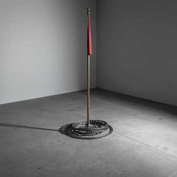 Industrial metal, BPM: 84, Key: C minor, Female lead vocals only (G3–C5), contralto with strong chest dominance, delivered in heavy, sustained phrases that alternate between controlled restraint and overpowering force, Vocals shift from measured authority in verses to towering, almost ceremonial projection in choruses, Guitars are downtuned and slow, built on thick, dragging riffs with long sustains and minimal movement, Synths are sparse, emphasizing low drones and rising tension swells, Bass is deep and enveloping, reinforcing gravity, Drums are deliberate and massive, favoring space and impact over speed, The mix is wide, oppressive, and monumental, designed to feel like ascent followed by collapse