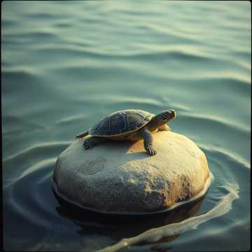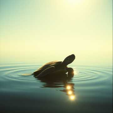 Create a sacred ambient Thai–Chinese fusion (80 BPM), Instruments: Thai flute, Gu qin, Khim, water ambience, soft bells, Mood: awakening, peaceful, divine, Represent the rebirth of faith — the Turtle rising from the deep, Begin with water sound, then add gentle Gu qin plucks and flute, Female choir humming “Awakening, Naka Siam, ” End with single bell tone fading into silence