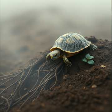 Create a 78 BPM sacred Thai–Chinese ambient song, Instruments: Gu qin, Thai flute, deep drum, and soft temple bells, Mood: grounded, meditative, timeless, Represent the Turtle rooting deep into the Earth — patience, faith, and silence, Begin with low earth resonance, add flute and Gu qin layers at 0:45, subtle heartbeat drums at 1:30, Include faint chanting “Ning, Sati, ”, End with bell fading into quiet rumble of the Earth