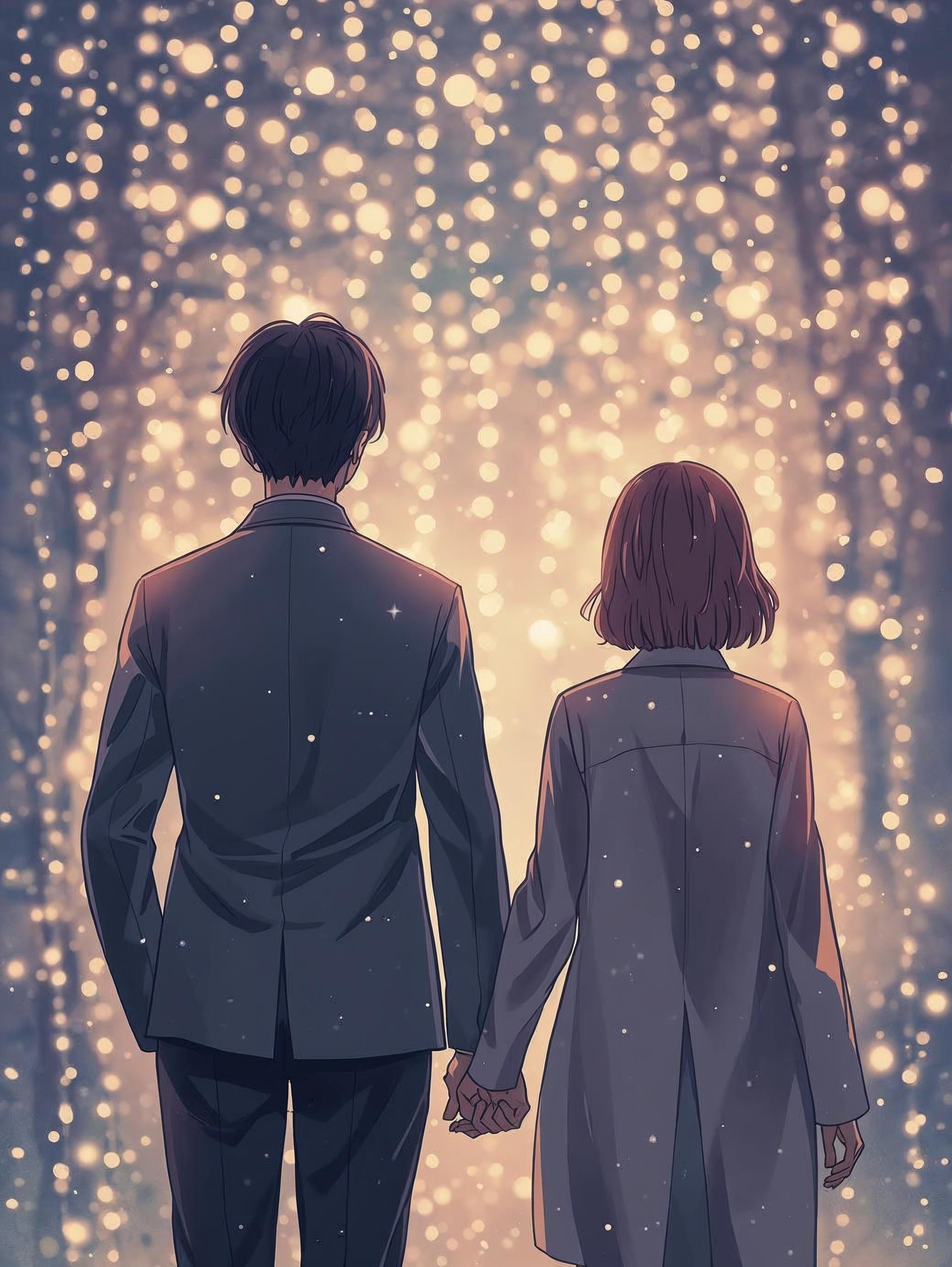 Create a romantic winter J-pop ballad with warm orchestral strings, electric piano, and soft percussion, Keep the arrangement cinematic but distinctly J-pop, with smooth chord progressions and a gentle, modern pop glow, The verses should feel intimate and close, with soft vocals and light instrumentation, Build gradually toward each chorus, where the sound opens with brighter strings, fuller pads, and dynamic drums to create a dramatic emotional lift, Keep the atmosphere warm, nostalgic, and heartfelt, focusing on the quiet tension and growing affection between two adults who share a long history, The vocals should be expressive and tender, rising with clarity and strength in the chorus, Avoid strong gospel elements; use only subtle background harmonies if needed, Maintain a mid-slow tempo and aim for a romantic, winter-night ambience filled with hope, softness, and the feeling of a future being discovered together, outro section fades out powerfully at the end, as if with resolv
