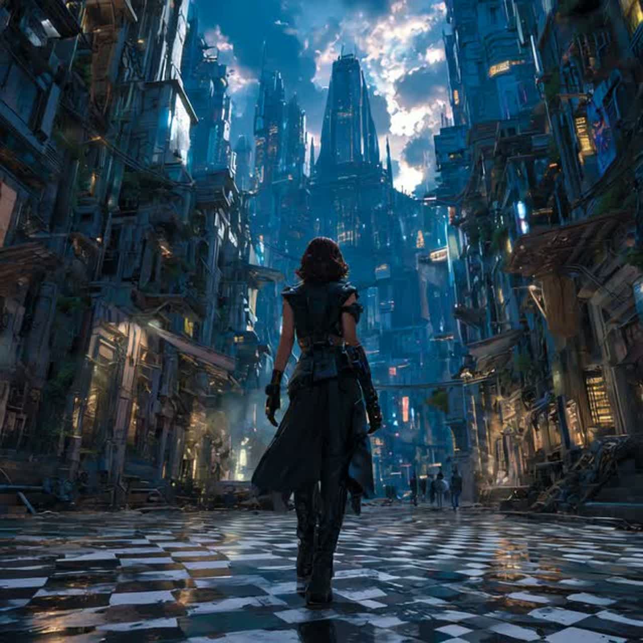 A high-energy electronic rock track with a driving beat and a powerful female vocal, The song features a prominent synth melody, heavy electronic drums, and a distorted bassline, The chord progression is primarily minor, creating a dramatic and intense atmosphere, The female vocalist employs a strong, clear tone with occasional soaring high notes and a slightly processed, ethereal quality, The song structure includes distinct verses, pre-choruses, and choruses, with instrumental breaks that build tension, The tempo is fast, contributing to the urgent feel, Production elements include heavy compression on the drums and vocals, reverb on the synths, and a wide stereo image, The overall mix is loud and impactful, with a focus on the lead vocal and the main synth melody