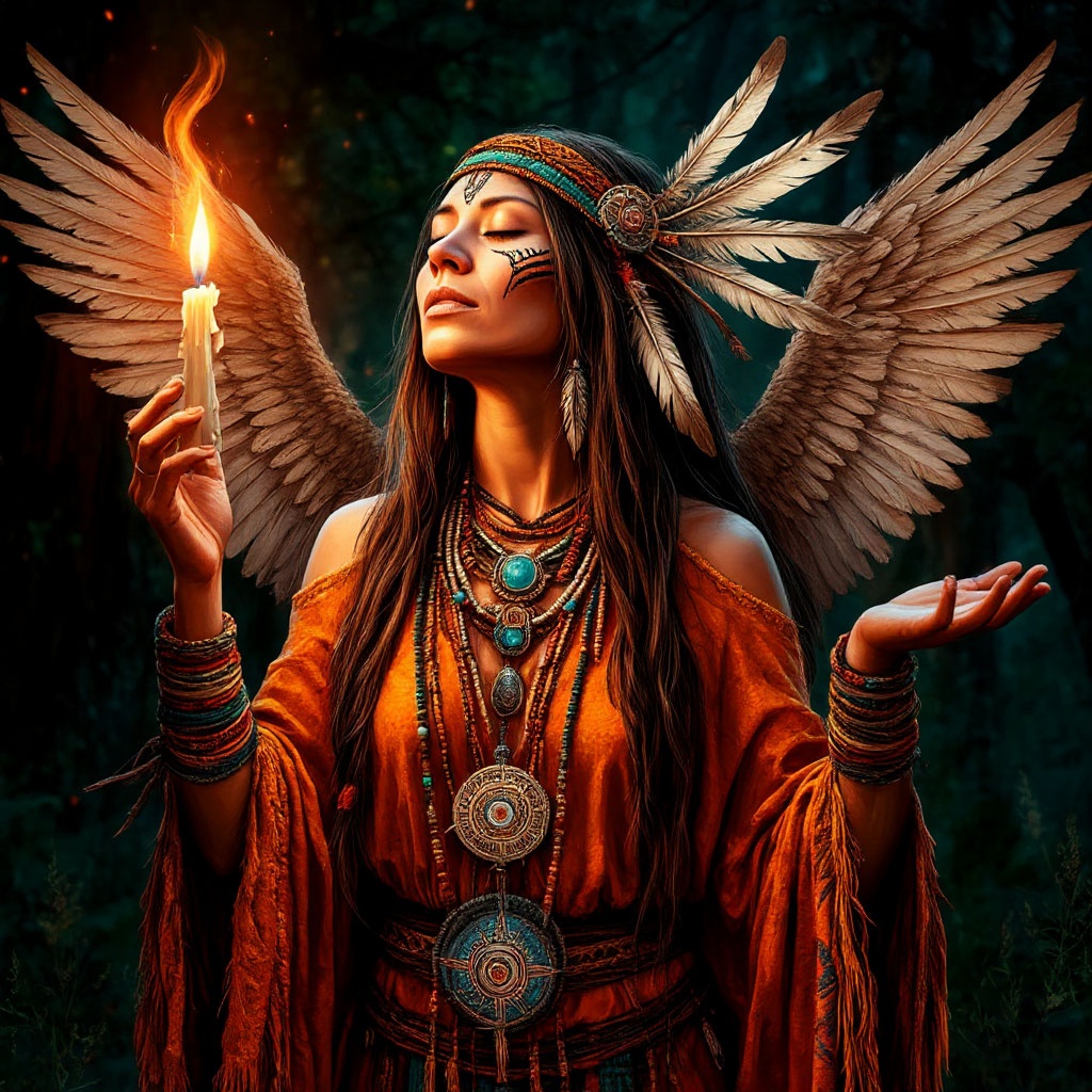 [ikaros peruvian shamans], tribal, shamanism, mystical and hypnotic melody inspired by the ikaros chants of Peruvian shamans and ayahuasca ceremonies, deep trance, The song should have a slow to moderate tempo with a free-flowing rhythm that evokes a trance-like state, Voices of the spirits and the elements, Pauses between musical phrases, deep and long plays, Deep male vocals with a distinctive Native American sound, throat shamanic singing, Binurial frequency 427Hz, Experimental