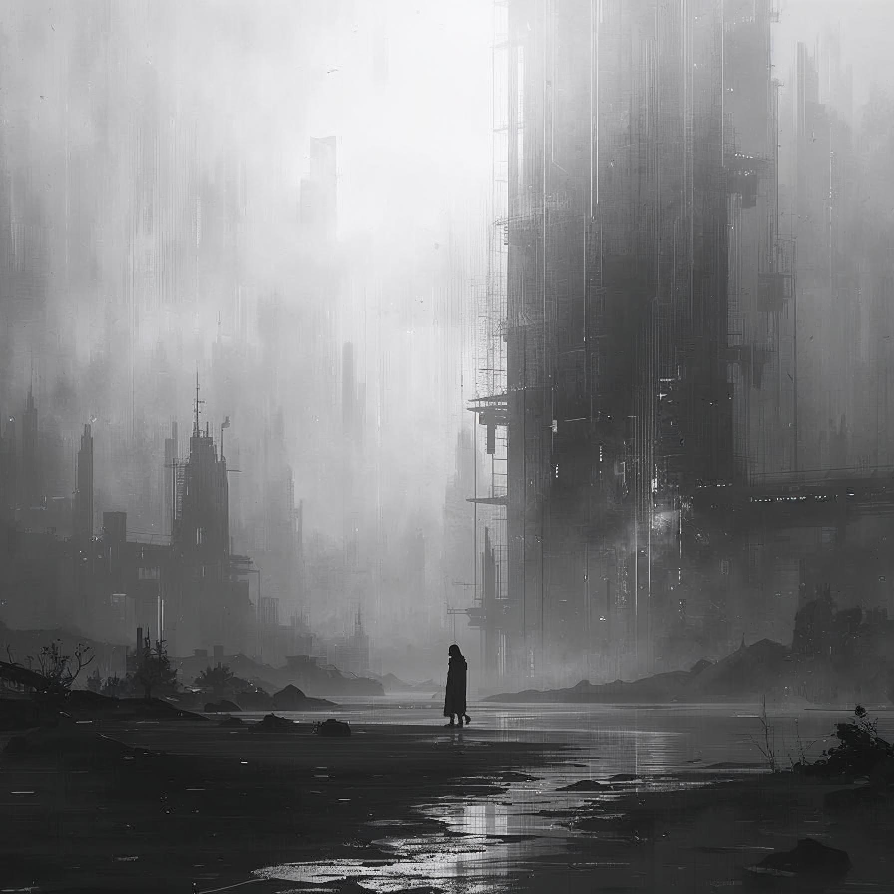 Genre: Gothic Rock / Dark Alternative Rock, A bleak, dystopian atmosphere with cold tension that gradually transforms into emotional acceptance, Verses feel restrained and oppressive, while choruses expand with dramatic release, Instrumentation includes deep distorted guitars, heavy low-end bass, slow to mid-tempo dark rhythms, subtle synth pads, and reverb-soaked piano or choir textures, Vocals are high-pitched and clear and hiccup, with an emotional, fragile intensity, The voice carries sorrow, defiance, and inner conflict, rising sharply in the chorus and resolving into a haunting, calm clarity at the end, Theme explores the realization that a flawed dystopia can become a personal utopia