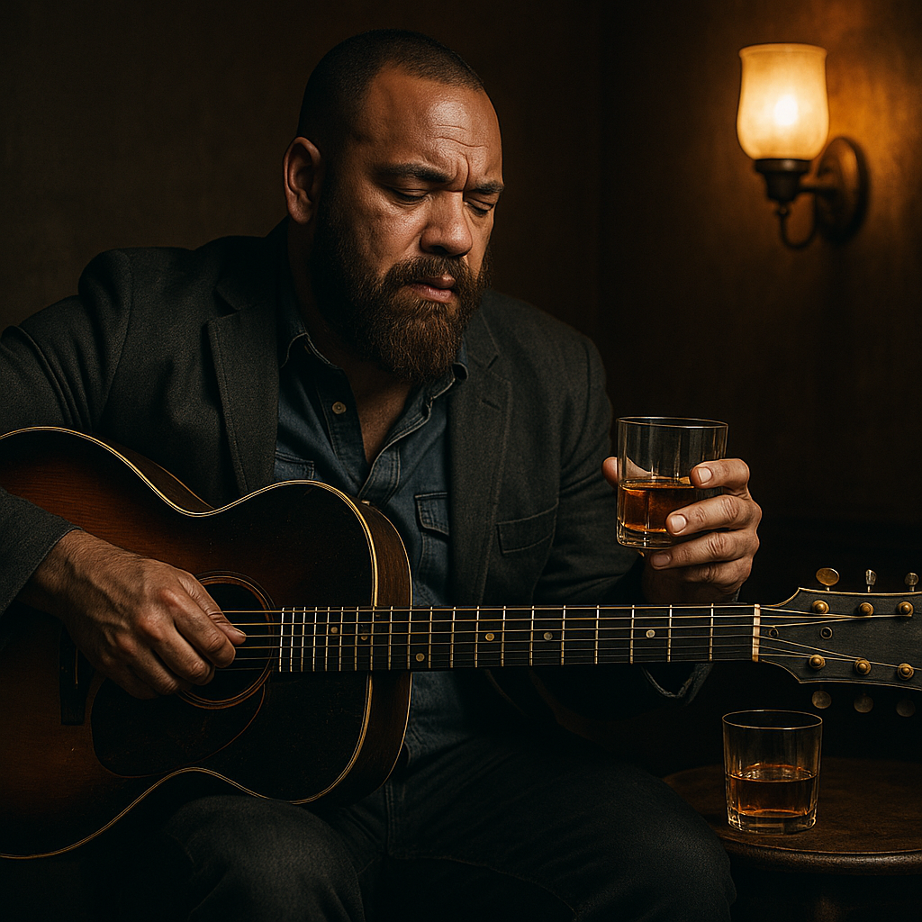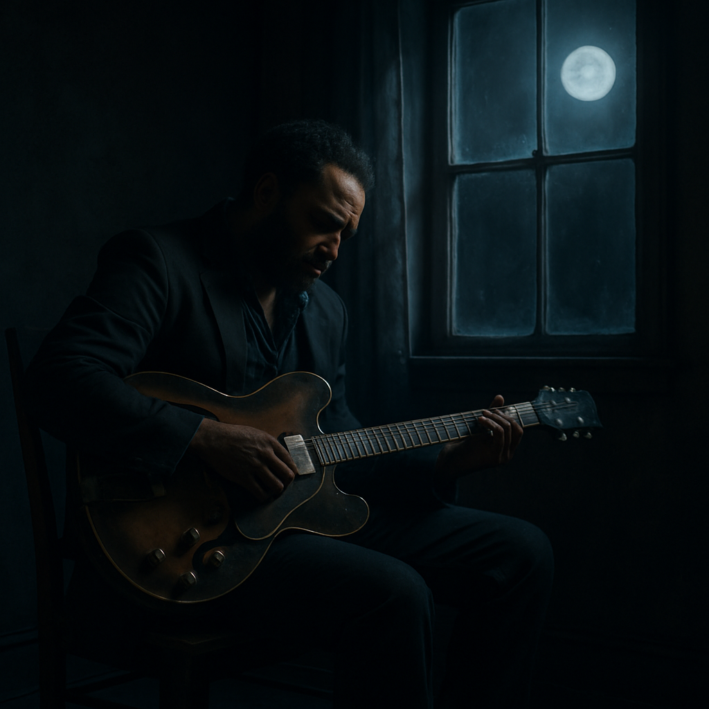 Blues ballad with slow-burning groove (~62 BPM), Emotional male vocals, gritty and soulful, with raw expression and subtle rasp, Full band arrangement: clean electric guitar with crying bends and long expressive solos, warm Hammond organ fills, upright bass walking softly, and laid-back blues drums with brushes and rimshots, Occasional slide guitar phrases for added sorrow, Intimate verses with quiet intensity, building into powerful choruses full of pain and longing, The guitar takes center stage in extended instrumental sections, echoing the heartbreak of the lyrics, Mood: smoky, late-night bar, heavy with sorrow and regret, Production: warm, analog vintage sound, wide mix with focus on vocals and guitar, Inspired by classic Chicago and Delta blues fused with modern emotional balladry