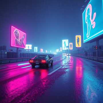 Begin with a crackling lo-fi radio broadcast filter that snaps abruptly into a high-speed retro-futuristic Cyber-Garage Rock anthem, The rhythm section must be aggressive, featuring syncopated breakbeat drums and a driving fuzz bass running through an octave pedal to create a wall of sound, Establish a manic audio landscape where a gritty Cockney male lead trades verses with a smooth falsetto male vocalist, while shimmery female gospel harmonies echo in the wide stereo field, Use a Kaleidoscopic Neo-Raga vibe with wet cavernous reverb on the backing vocals but keep the lead vocals dry and punchy to cut through the mix, In the middle section, unleash a wild Hammond B3 Organ solo distorted by a ring modulator and fast Leslie speaker rotation, The track should feel like a hallucogenic high-speed chase, maintaining 128 BPM urgency with heavy side-chain compression, before dissolving back into a static-filled radio outro with brickwall mastering and analog tape saturation, sidechain effects