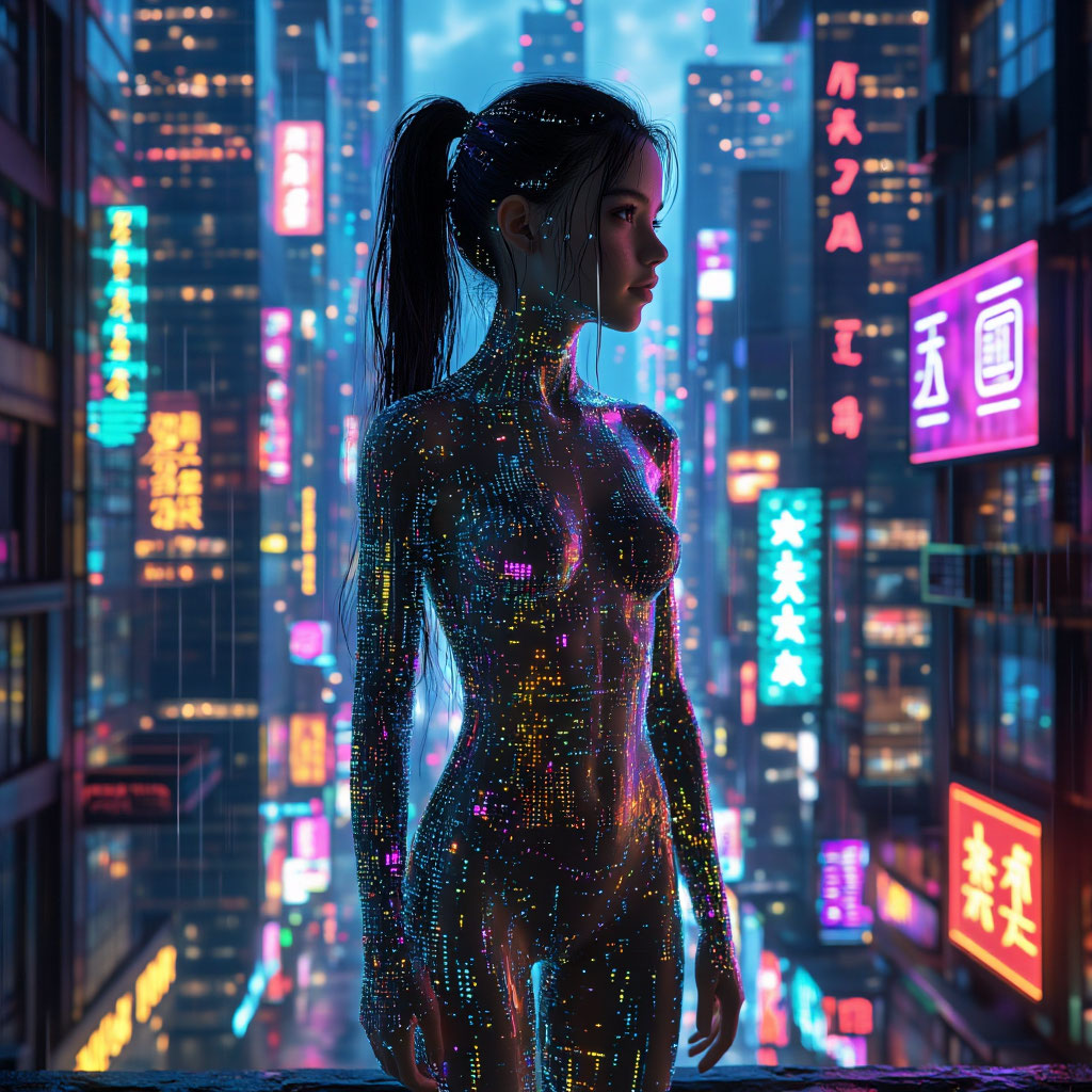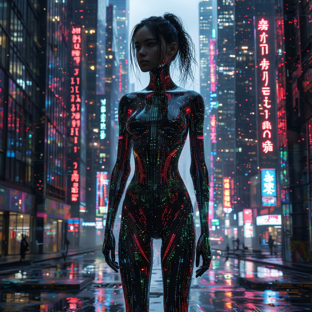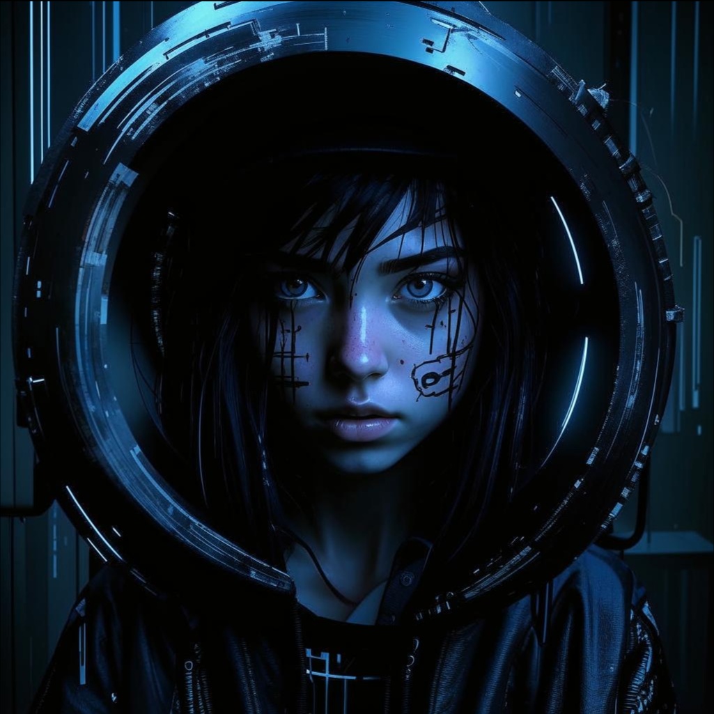 Haunting female vocals, futuristic, icy whispers, glitchy tribal beats, Cyber-pagan vibe with distorted hurdy-gurdy, 120 BPM, Phrygian harmony, dissonances, dark noises