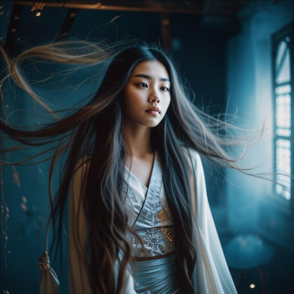 Haunting female vocals, icy whispers, glitchy tribal beats, Cyber-pagan vibe with distorted hurdy-gurdy & Soviet synths, Chinese, 120 BPM, Phrygian scale