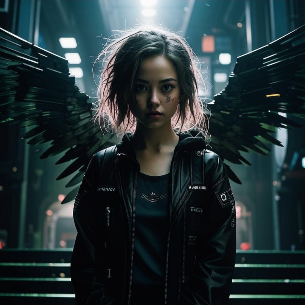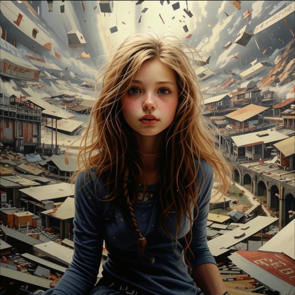 Haunting children choir, little girl, futuristic, icy whispers, glitchy tribal beats, Phrygian harmony, dissonances, dark noises