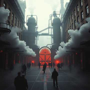 Mood: Ominous, mechanically hypnotic, dystopian Gothic, simultaneously awe-inspiring and oppressive - evoking vast underground infrastructure that sustains yet enslaves civilization