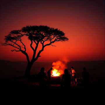 funk, Expansive tribal world score built around 432 Hz and solfeggio-tuned textures, Warm, round djembe and low wooden drums lock a hypnotic polyrhythm, with layered shakers and hand percussion weaving a constant, earthy motion, Expressive pan flutes and breathy reeds carry call-and-response motifs that rise into cinematic swells with deep drones and subtle nature ambience (embers, distant night insects), Arrangement starts sparse and grounded, then gradually adds rhythmic and melodic density, peaking in a ritualistic, dance-like trance before resolving into a glowing, meditative outro, Ideal for immersive, high-fidelity Dolby Vision-style soundstages, world, warm, deep, hypnotic