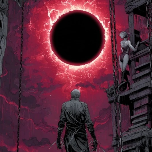 dark symphonic power metal, darkwave, goa trance, dark folk, neoclassical, male bass-baritone, vocal fry, dynamic, cinematic, action score, boss fight music, dramatic, villain, evil, intense, theatri